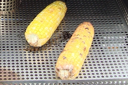 - オーブン扉を閉じ、焼き上げます。下茹でしたトウモロコシの場合は10~20 分で出来上がります。(素材の種類や形状・焼く量・焼き方・バーナー火力調整・外気温等の環境条件により焼きあがり時間が異なります。)
